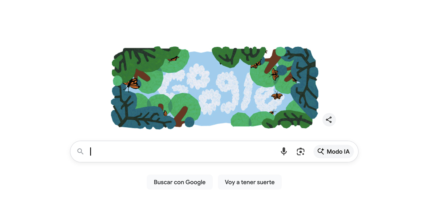 Google dedicó este martes su tradicional doodle, la ilustración animada que aparece en la página principal del buscador, a la mariposa monarca, en honor a su llegada a los bosques mexicanos, donde permanecerá hasta marzo de 2026.