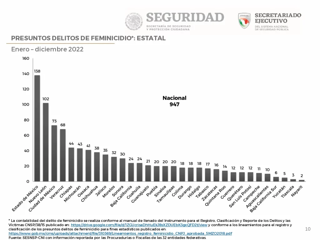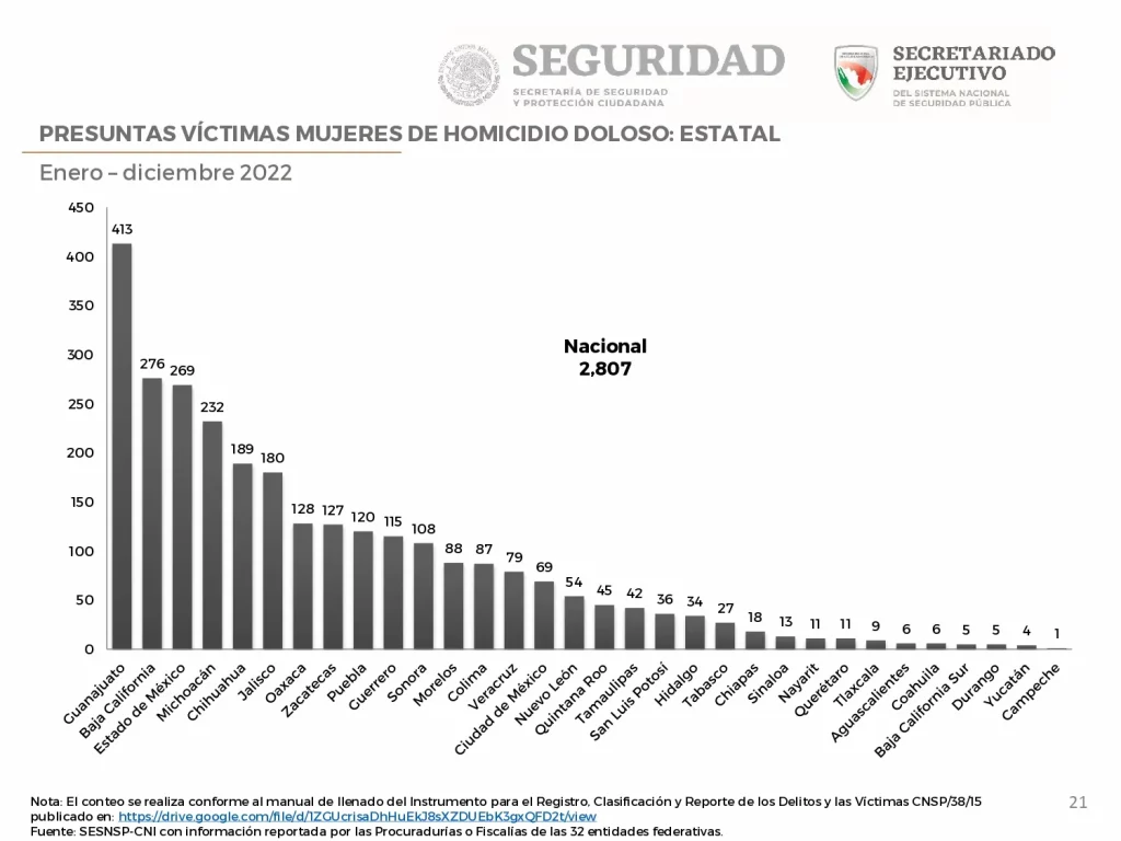 La Secretaría de Seguridad y Protección Ciudadana informó que Guanajuato fue el primer lugar en asesinatos de mujeres, con 434 muertes, lo que lo convierte en el estado más violento para las mujeres del país.