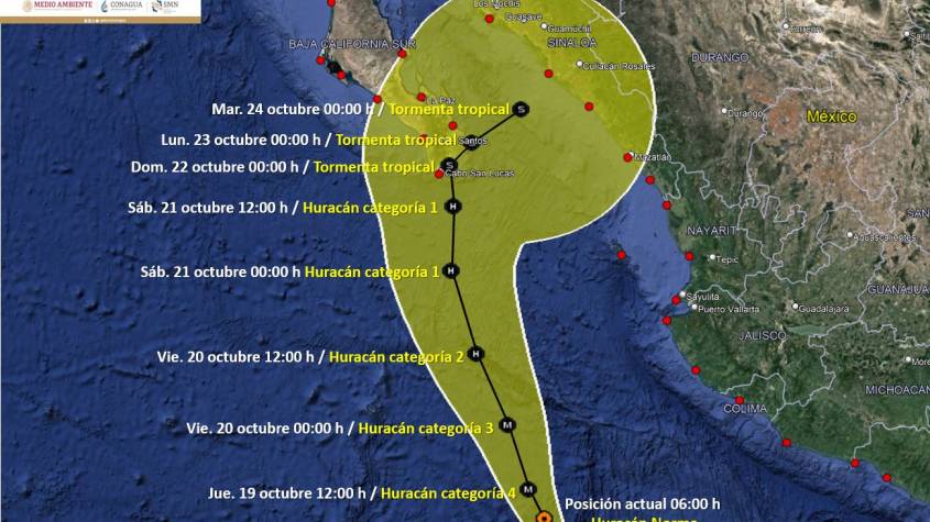 - Baja California Sur: Norma se espera que toque tierra en este estado el domingo, pero con una intensidad disminuida, siendo una tormenta tropical. Esto aún puede causar chubascos y otros problemas.