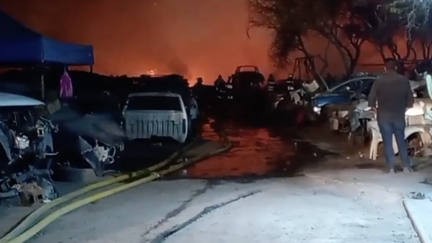 La noche de este miércoles se registró un incendio en un deshuesadero de vehículos donde se almacenaban cientos de partes automotrices usadas, en el municipio de Purísima del Rincón.