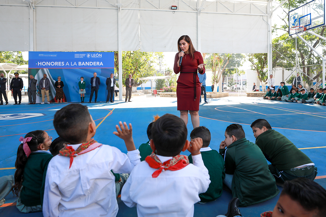 La presidenta municipal, Ale Gutiérrez, participó en los Honores a la Bandera en la escuela Teotihuacán Federal, donde se entregaron diversas obras de mejora. Durante el acto, señaló que contar con instalaciones adecuadas contribuye al desarrollo académico y personal del alumnado.