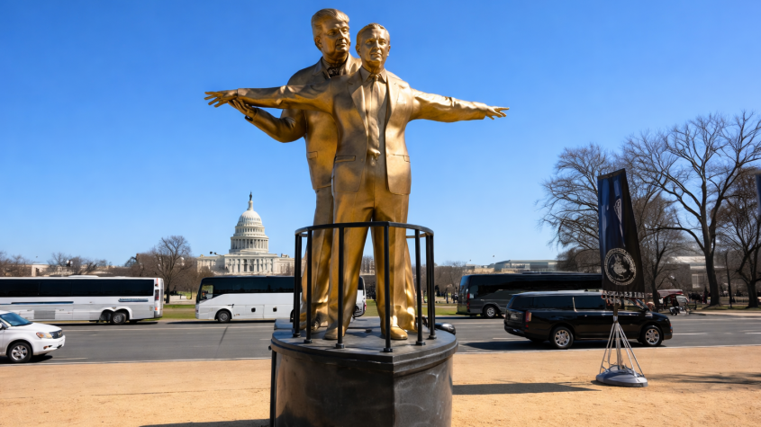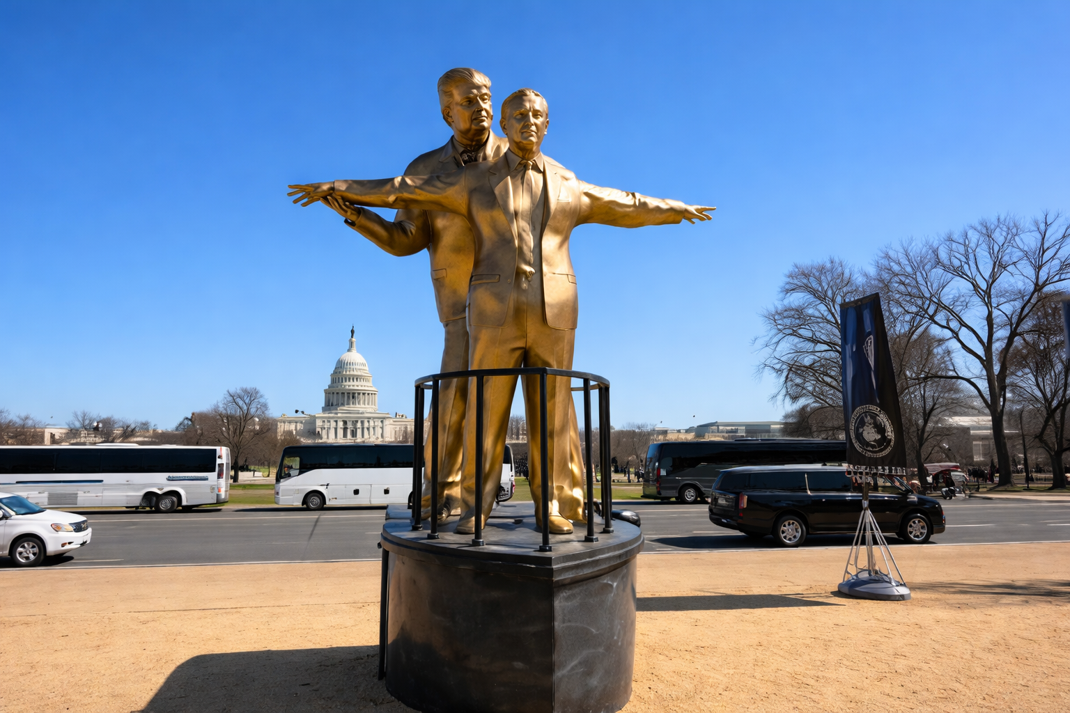 Una nueva instalación artística generó controversia en la capital de Estados Unidos luego de que apareciera una estatua que representa al expresidente Donald Trump junto al financiero Jeffrey Epstein en el National Mall, uno de los espacios públicos más emblemáticos de Washington.