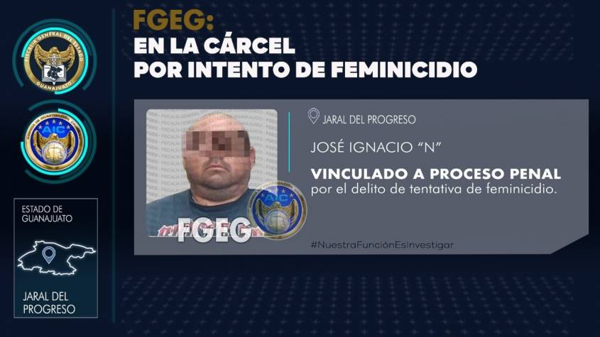 En esta fecha, JOSÉ IGNACIO “N”, ha sido vinculado a proceso penal con medida cautelar de prisión preventiva, por el delito de feminicidio en grado de tentativa.