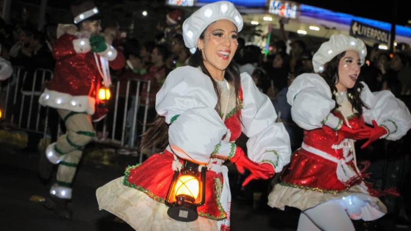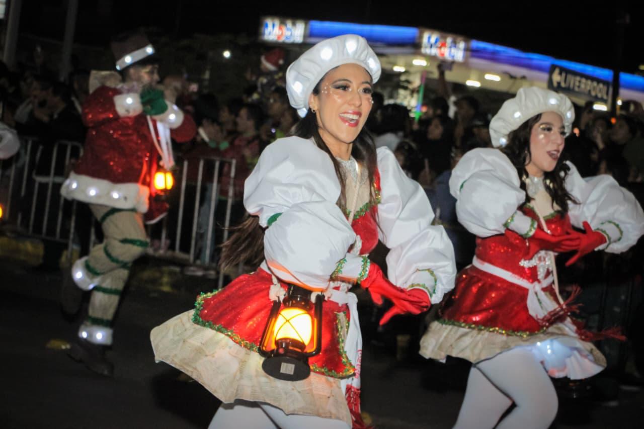 Al ritmo de villancicos y canciones típicas de la temporada, el contingente presentó acrobacias, coreografías y una producción visual que cautivó tanto a niñas y niños como a adultos. Los carros temáticos “Cuento”, “Crucero”, “Tren”, “Piñata”, “Teatro”, “Snow Gloves”, “Aurora” y “Trineo” avanzaron por el bulevar Euquerio Guerrero, convirtiéndolo en un auténtico escenario navideño.