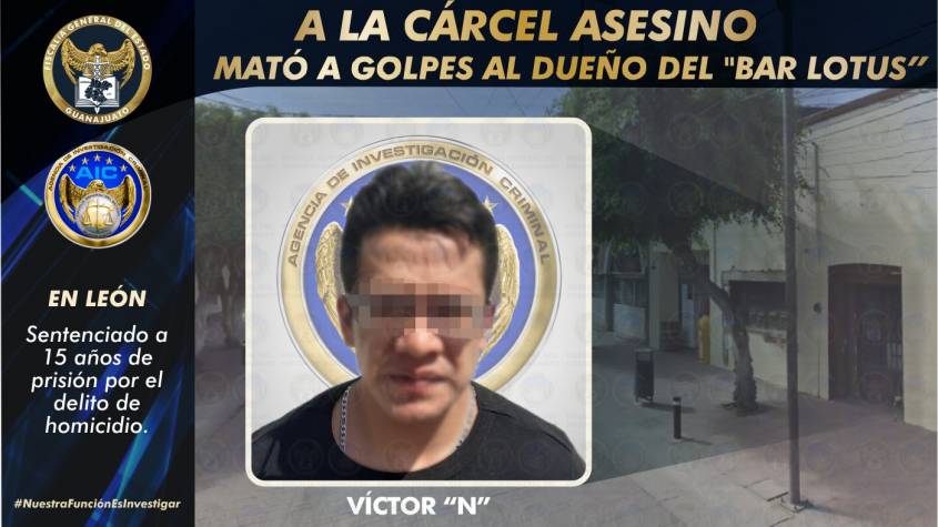 Una noche de karaoke en un bar del corredor Francisco I. Madero en León, terminó en riña, el dueño del negocio se vio involucrado en el altercado y le arrebataron la vida a golpes. La Fiscalía General del Estado investigó lo sucedido esa madrugada y comprobó ante el Juez la culpabilidad del responsable, quien deberá cumplir una condena en prisión de 15 años.