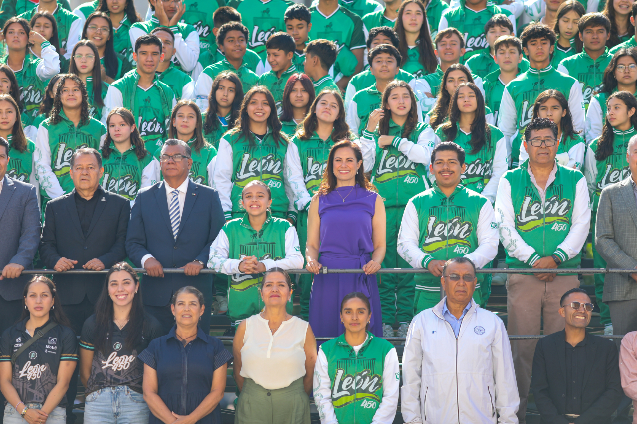 La Plaza Principal fue sede de la toma de fotografía oficial del contingente, en un evento encabezado por la presidenta municipal, Ale Gutiérrez, quien reconoció el desempeño de las y los atletas leoneses y su contribución en resultados deportivos a nivel estatal.