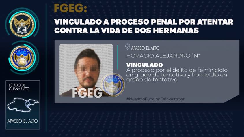 La Agencia de Investigación Criminal, detuvo a HORACIO ALEJANDRO “N” por atacar con un cuchillo a dos hermanas en Apaseo el Alto.