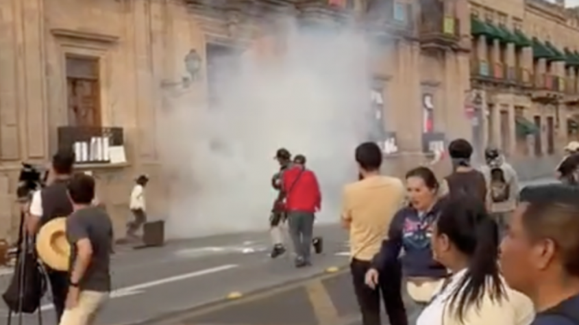 Marcha por Manzo termina en destrozos en Palacio de Gobierno en Morelia.