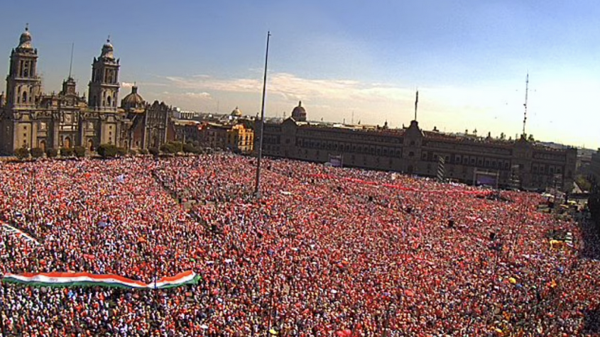 Tres enormes pantallas, que flanqueaban al estrado, trasmitían las imágenes de la “concentración rosa” que poco a poco se iba agrandando en el Zócalo, y también pasaban videos de la marcha del pasado 13 de noviembre que igualmente se realizó para defender al INE de los “embates” del gobierno lopezobradorista.