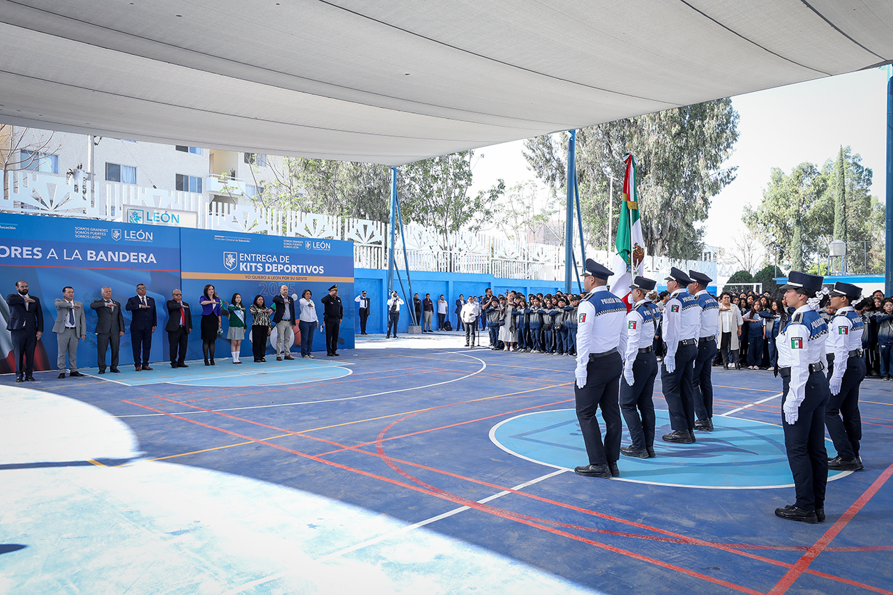 La presidenta municipal, Ale Gutiérrez, encabezó los Honores a la Bandera en esta escuela y destacó que desde su administración se impulsan acciones para fortalecer la educación, como la rehabilitación de canchas, construcción de bardas y entrega de material deportivo.