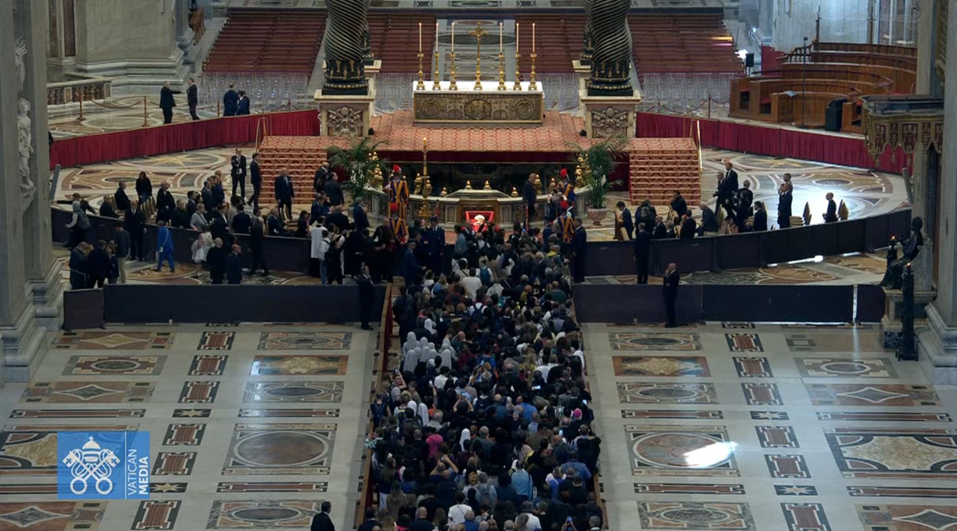 Ese mismo miércoles, su cuerpo fue trasladado en una procesión solemne desde la capilla de la Casa Santa Marta hasta la basílica, donde fue colocado en el “Altar de la Confesión”, justo sobre la tumba de San Pedro. A diferencia de la antigua tradición que incluía tres ataúdes, el papa Francisco decidió simplificar su funeral y yace en un ataúd de madera abierto.