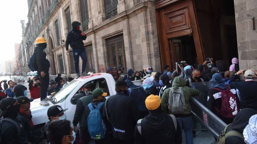 Las puertas de Palacio Nacional, construido durante la época colonial, han sido blanco de protestas en el pasado, pero es la primera vez en años recientes que se logra su apertura mediante un acto de este tipo.