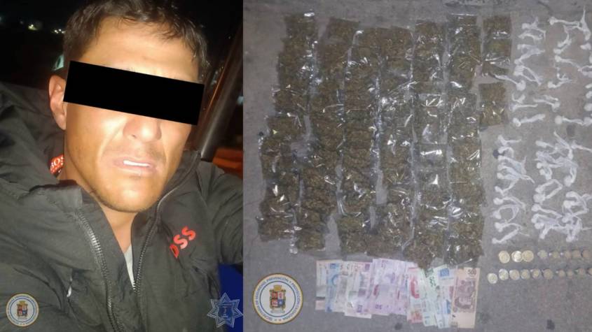 De acuerdo con la información oficial, durante recorridos de prevención, elementos policiales observaron a un individuo que portaba una mochila y que presuntamente intercambiaba envoltorios por dinero con otra persona. Al notar la presencia de los oficiales, ambos sujetos intentaron huir del lugar.