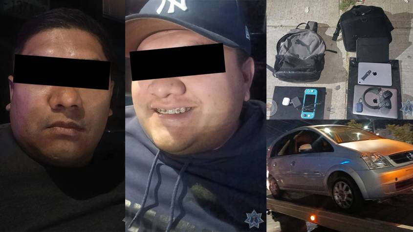 Los detenidos fueron identificados como Carlos Alfredo “N” y Cristóbal Javier “N”, ambos con antecedentes por robo a interior de vehículo. De acuerdo con los registros, cada uno suma 38 detenciones previas, siete de ellas relacionadas con este delito.