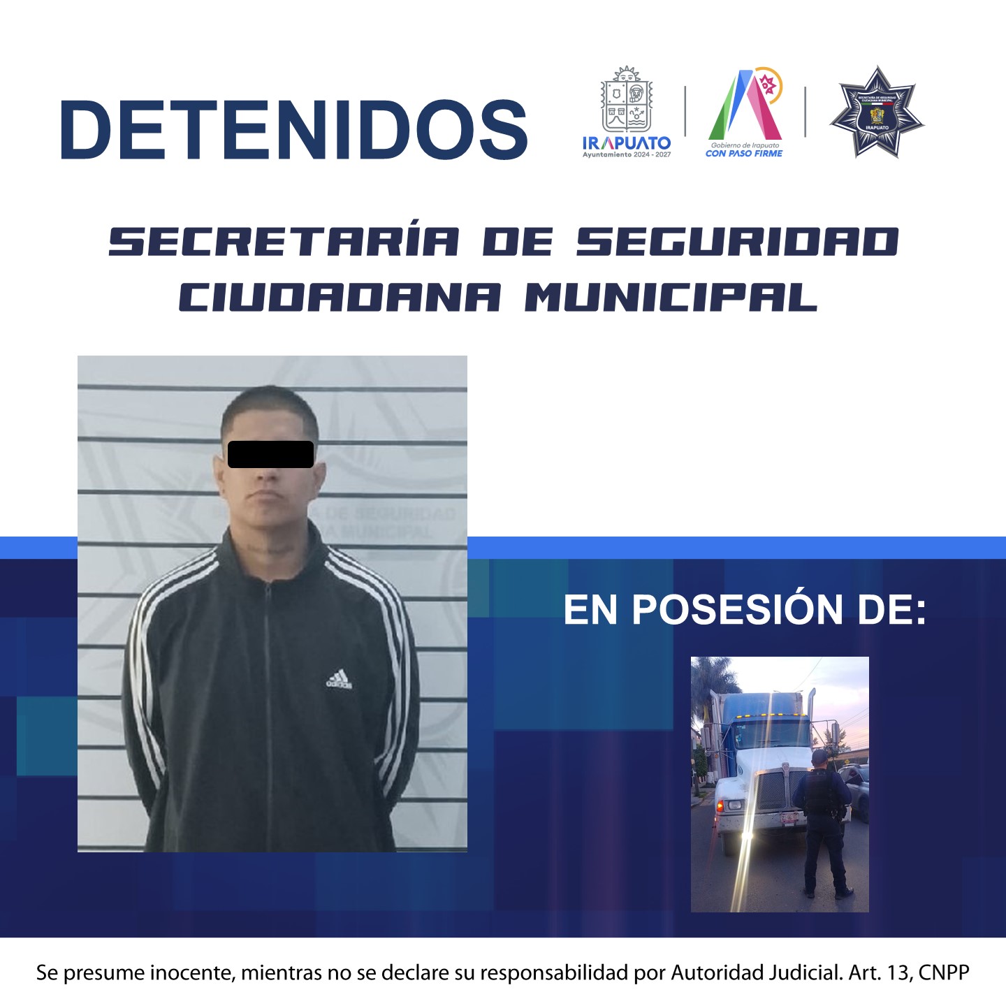 Un tráiler con reporte de robo fue recuperado en Irapuato gracias a la tecnología de las cámaras lectoras de placas del C4 instaladas en arcos carreteros. En el operativo, policías municipales detuvieron a un hombre de 24 años identificado como Raúl “N”.