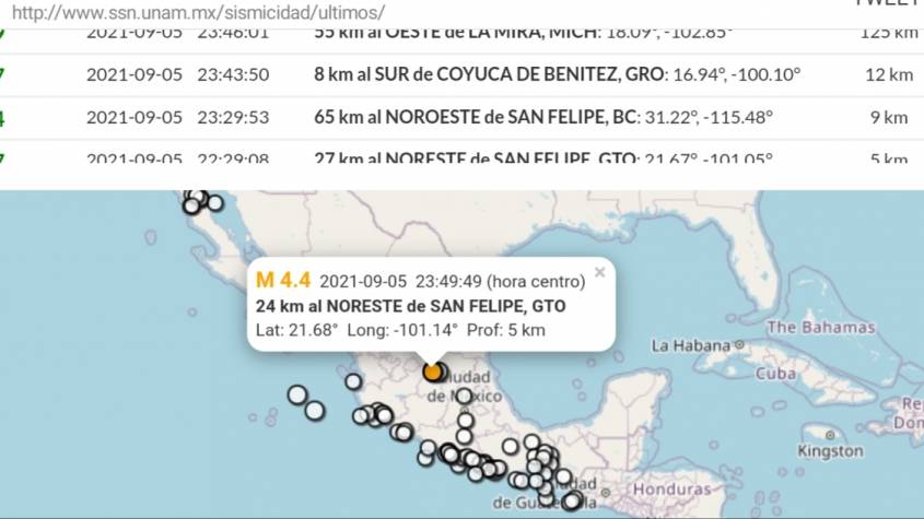 En la página del SSN (Sistema Sismológico Nacional), se ha informado de al menos 20 movimientos telúricos desde el domingo 5 de septiembre hasta hoy, lunes 6. Sin embargo, la magnitud de estos, ha oscilado entre los 3 y los 3.6 grados en la escala de Richter, por lo que usualmente no son percibidos por la población.