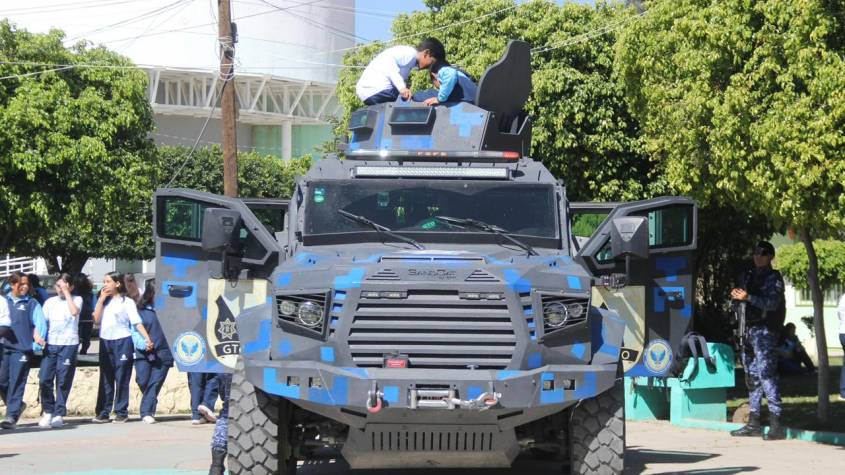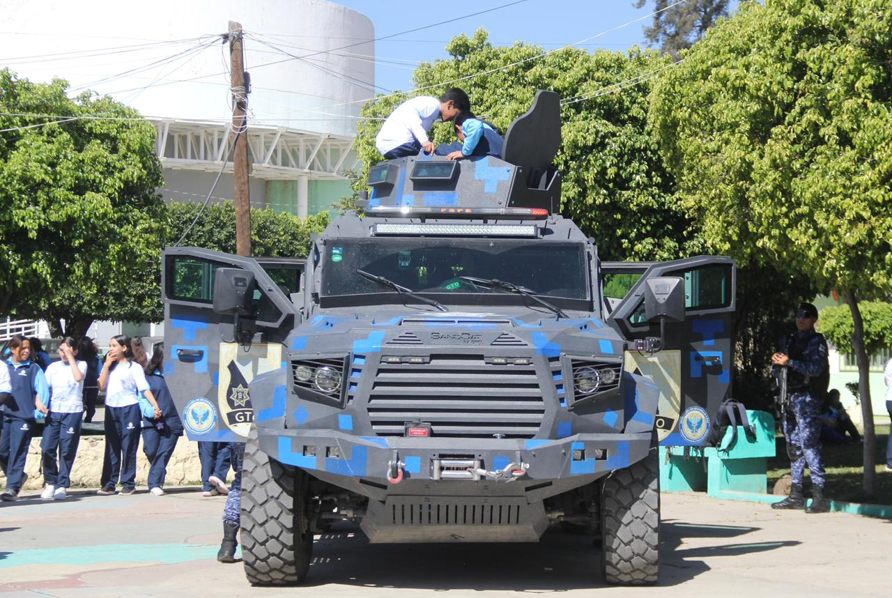 Como parte de las actividades, se presentó una exhibición de vehículos oficiales, entre ellos unidades RZR, motocicletas, patrullas y un tanque antimotines utilizados por corporaciones de los tres niveles de gobierno. Después del acto protocolario, las y los estudiantes pudieron tomarse fotografías con el personal operativo, patrullas y binomios caninos. También escucharon testimonios sobre la labor diaria de los cuerpos de seguridad.