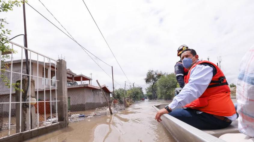 Recorre Gobernador Diego Sinhué, zonas afectadas por inundaciones en Abasolo