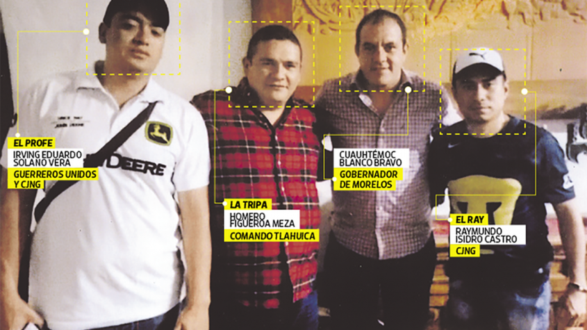 El periódico publicó una fotografía exclusiva donde se ve al ya gobernador, junto a dos personas identificadas como miembros del Cártel de Jalisco Nueva Generación (CJNG): Irving Eduardo Solano Vera, jefe de plaza, y al líder asesinado Raymundo Isidro Castro Santiago, así como a Homero Figueroa Meza, señalado como líder de Los Tlahuicas.