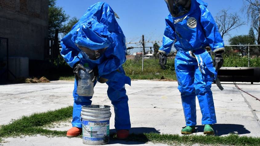 Gabriel Mateos, instructor del Infospe, explicó que el objetivo es que el personal se familiarice con los protocolos de seguridad y el equipo necesario para abordar este tipo de situaciones.