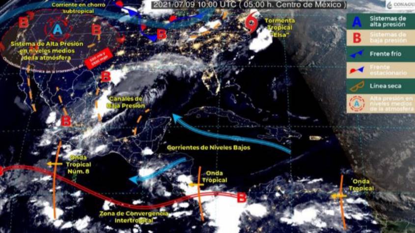 De acuerdo al reporte del Servicio Meteorológico Nacional, este día, la onda tropical número 8 recorrerá lentamente el occidente del país e interaccionará con un canal de baja presión y con inestabilidad en niveles altos de la atmósfera, provocando lluvias fuertes a muy fuertes en dicha región, así como lluvias puntuales intensas en Nayarit.
