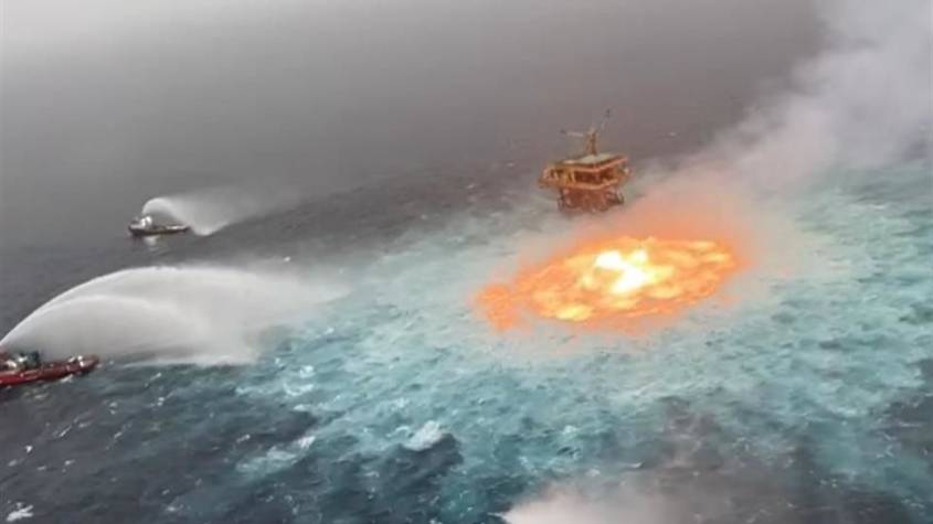 A las 5:15 horas de hoy, se registró una fuga de gas en el ducto submarino de 12 pulgadas y la presencia de fuego en el mar, a 150 metros de la plataforma satélite KU-C, localizada en la Sonda de Campeche perteneciente al Activo de Producción Ku-Maloob-Zaap.