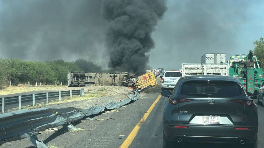 Se incendia tractocamion tras intento de asalto en la carretera Querétaro – Salamanca