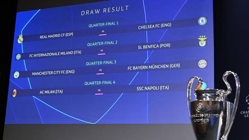 El Napoli de Hirving Lozano se enfrentará al Milan en los cuartos de final, mientras que el Manchester City de Haaland se enfrentará al Bayern Múnich y luego al ganador del Real Madrid vs. Chelsea y en el último encuentro el Inter de Milán se enfrentará al Benfica de Portugal.