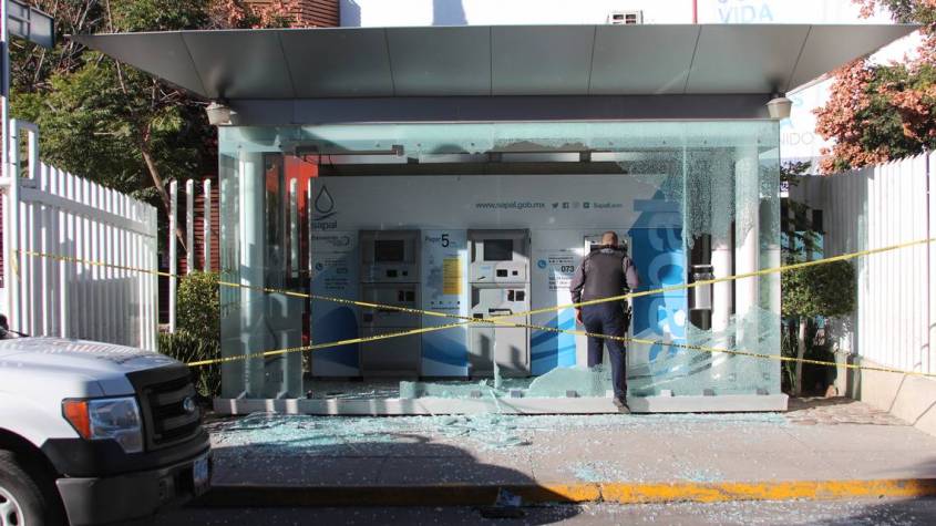 El reporte oficial fue emitido al número de emergencias 911 por parte de los vecinos que alertaron sobre dos personas intentando abrir con herramientas los cajeros de SAPAL.