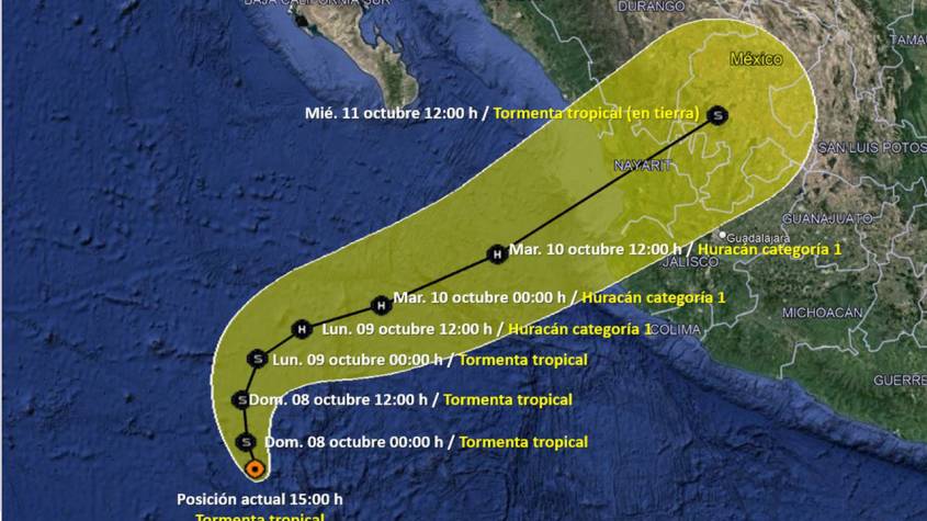 El gobierno de México ha emitido una alerta de huracán para la región que se extiende desde Playa Pérula hasta Mazatlán.