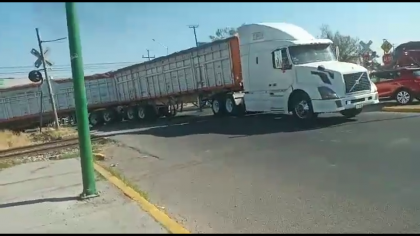 Este lunes, un tractocamión doble remolque cargado de mas de 50 toneladas de granos básicos, fue arrollado por un convoy ferroviario cuando quiso ganarle el paso en Celaya.