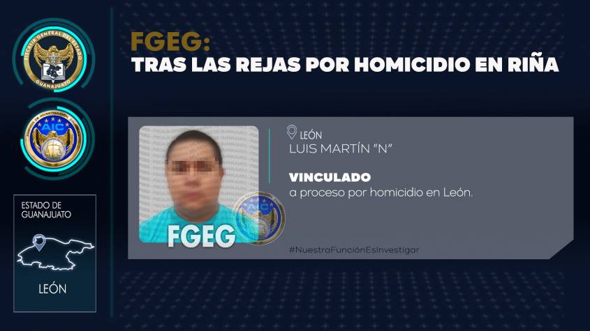 El imputado es señalado como presunto responsable de un homicidio cometido durante riña, la madrugada del 22 de diciembre de 2019 en el centro de la ciudad de León.