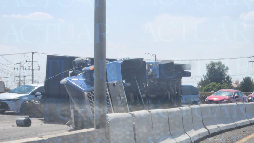 Un camión que transportaba materiales de reciclaje, volcó en la carretera León – Silao a la altura de la curva de el Potrero alrededor de las 2 de la tarde.